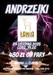 06 paź Andrzejki 29 listopad 2025 Posted at 14:49h in Bez kategorii by AdminFasing 0 Comments 0 Likes „Wieczór Andrzejkowy” w Restauracji Łania to sposób na dobrą zabawę i czas na pyszną kolację Rezerwacje przyjmujemy pod numerem 793 705 872.