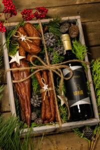 Oferujemy eleganckie paczki świąteczne dla bliskiej Ci osoby lub współpracownika w których mogą się znaleźć widoczne na załączonych zdjęciach wyroby wędliniarskie firmowane przez naszą restaurację wina, własne wypieki , a także najwyższej jakości kawy i herbaty.